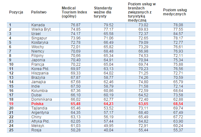 Przed nami znalazła się Kostaryka, Kolumbia, Jamajka i Indie. Na liście jest tylko 25 krajów. Pojawiliśmy się tam jako jedyni reprezentanci Europy Środkowo – Wschodniej, co ciekawe w rankingu nie pojawiły się Węgry oferujące od lat ofertę stomatologiczną czy Czechy ze swoją ofertą uzdrowiskową.